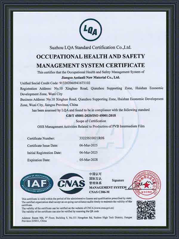 Sa tírdhreach uirbeach nua-aimseartha, is iad na foirgnimh ard-ardú an ceann is mó a bhíonn ag foirgnimh agus éilíonn siad ábhair chun freastal ar riachtanais ailtireachta, sábháilteachta agus éifeachtúlachta fuinnimh. Comhpháirt chriticiúil amháin i gcórais gloinithe ard-ardú is ea an scannán Interlayer PVB ailtireachta (polyvinyl butyral), a sholáthraíonn sláine struchtúrach, friotaíocht tionchair, insliú fuaime, agus cosaint ultraivialait do ghloine lannaithe. I measc na bpríomh-imreoirí domhanda sa réimse seo, seasann Jiangsu Aotianli New Material Co.